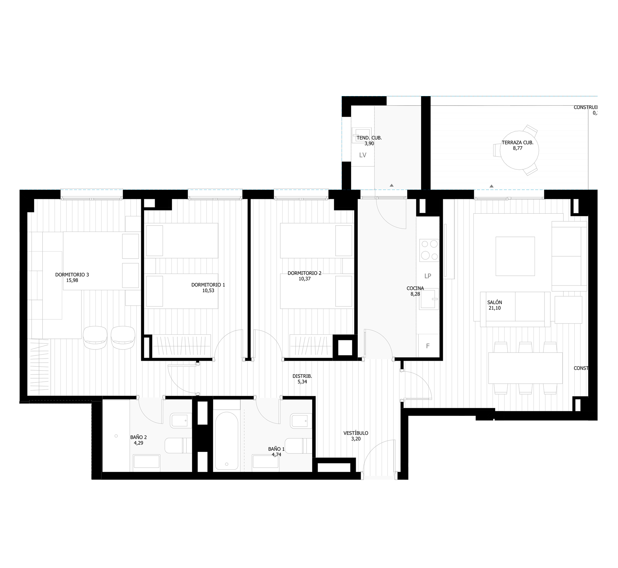 | Ático 3 dormitorios | 3 / 2 | 154,18 | CONSULTAR | - | Ver ahora |