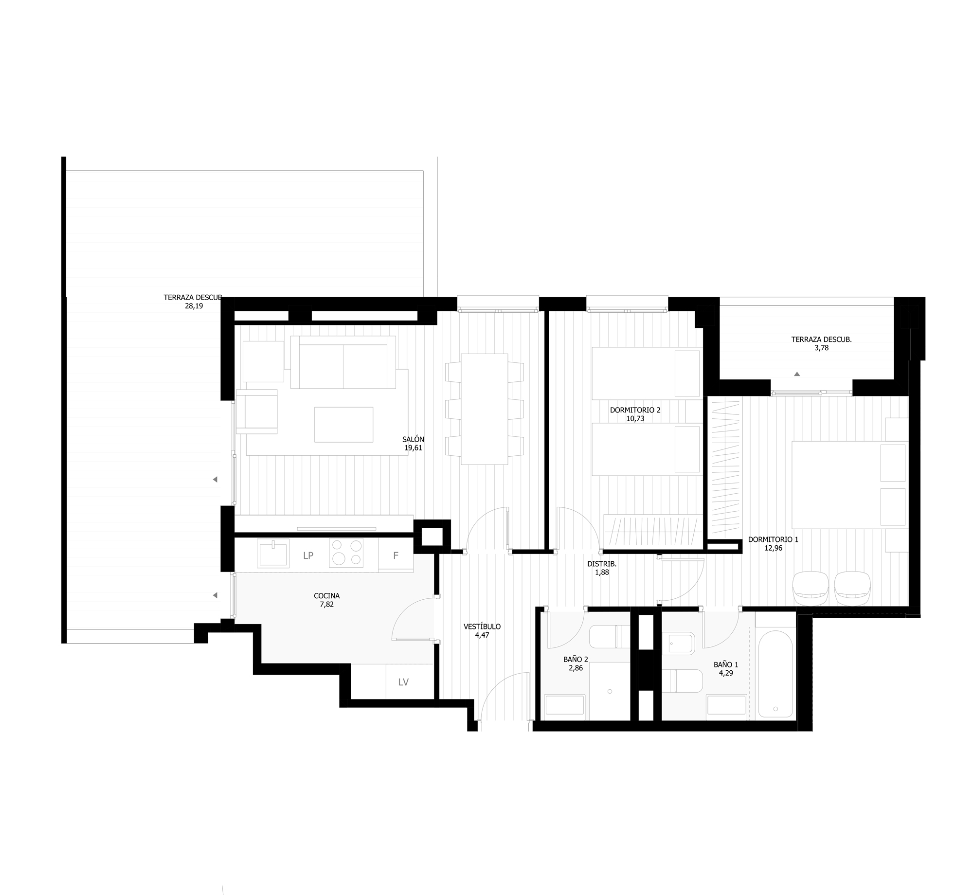 | Ático 2 dormitorios | 2 / 2 | 128,40 | CONSULTAR | - | Ver ahora |