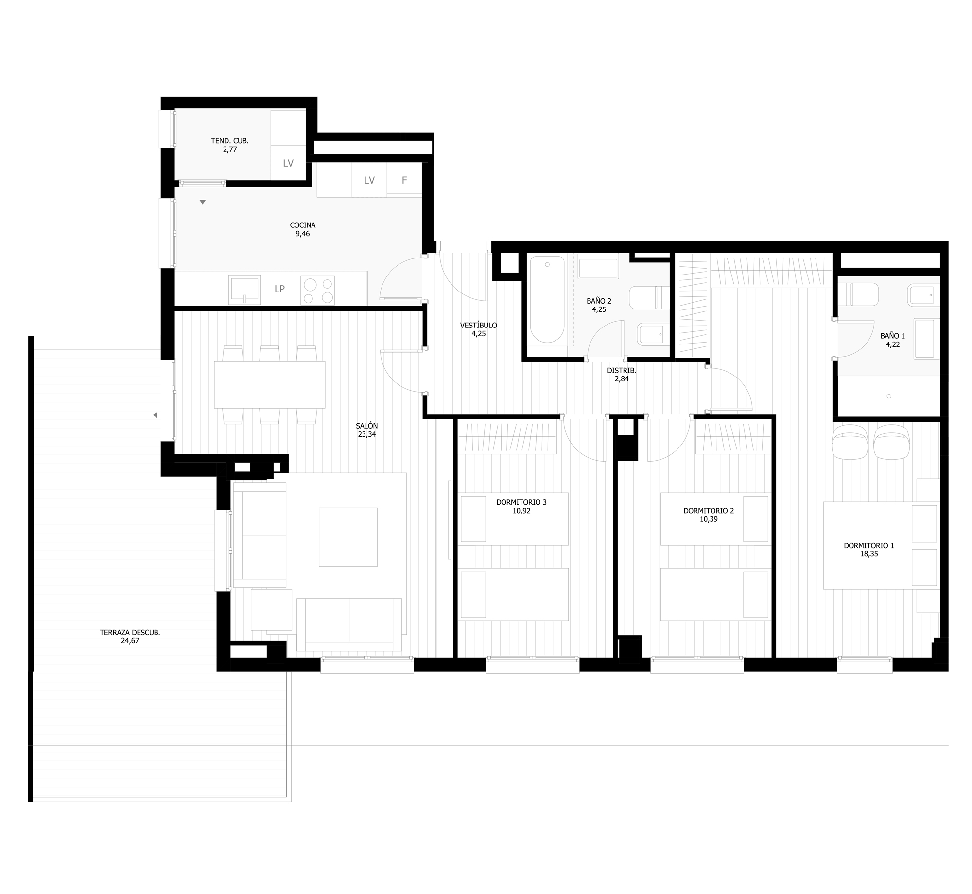 | 3 dormitorios (1ª planta) | 3 / 2 | 133,27 | CONSULTAR | - | Ver ahora |